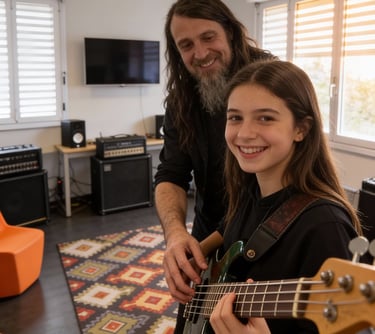 Mattia ha 11 anni e il basso l'ha trasformato: più concentrato, più disciplinato, più felice. Vederlo progredire settimana dopo settimana è una soddisfazione immensa. E finalmente ha trovato un'alternativa costruttiva ai videogiochi.